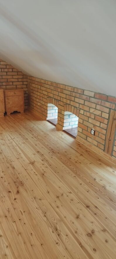 Drewniane podłogi (parkiet), kuchnia i piwnica – płytki